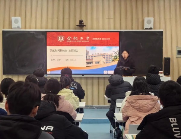 为全面落实立德树人根本任务,深化班主任队伍专业化建设,合肥二中班主任成长共同体中期汇报活动于1月21日下午在录播教室顺利举行。本次汇报聚焦“主题班会”设计与实施能力,旨在通过示范引领、实践展示与精准研讨,系统检验并促进青年班主任的育人水平。活动特别围绕《我的时间我做主》这一主题,展开了一场精彩纷呈的育人智慧碰撞。