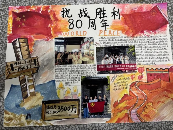 活动结束后,同学们以手绘海报的形式表达对先烈的缅怀。盛欣蕾同学的海报以“烽火印初心,青春铸丰碑”为主题,传递珍爱和平、不忘历史的信念;倪欢欢同学则通过剪贴历史影像,生动再现革命先辈的奋斗历程。团支书表示:“这次活动让我们深刻认识到红色江山的来之不易,我们要继承先烈遗志,为新时代贡献青春力量。”