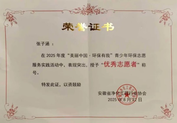 因表现突出,张子涵同学被授予“优秀志愿者”荣誉称号,成为全班同学学习的榜样。