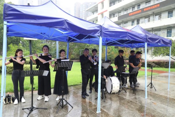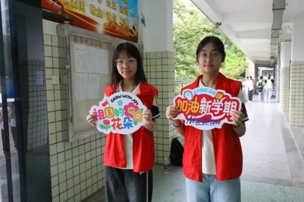 早晨7时起,校园内便洋溢着热烈而温馨的开学氛围。校门口,管乐团的精彩表演与“冲”文化广场相映成辉,学生志愿者手持欢迎标语,迎接同学们重返校园。