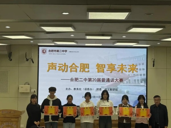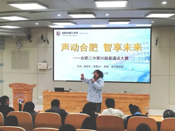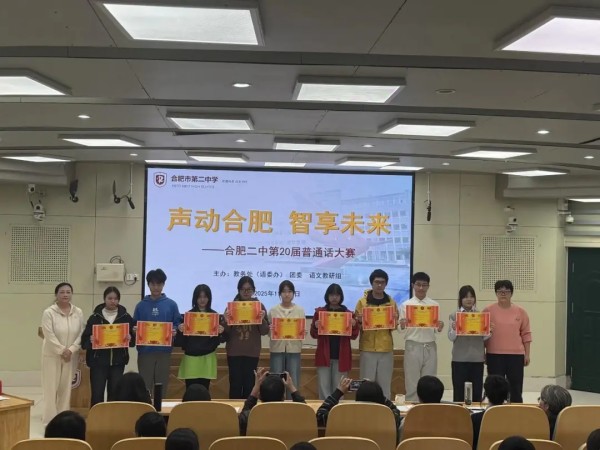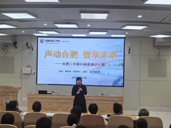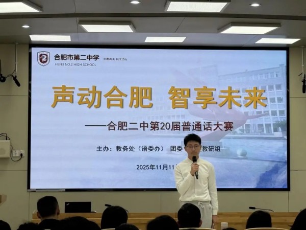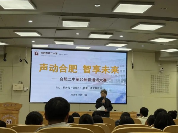 为进一步推广国家通用语言文字,提升学生语言表达能力与文化素养,营造“说普通话、写规范字”的校园文化氛围,展现新时代青少年的精神风貌,11月11日,由教务处(语委办)、校团委、语文教研组联合主办的“声动合肥,智享未来”普通话大赛在校多功能厅隆重举行。高一、高二年级共34名选手齐聚一堂,以声传情、以言会友,为现场观众带来一场精彩纷呈的语言盛宴。校党委书记苏卫兵,党委副书记、校长田先科,党委委员、副校长胡毅林出席活动并为获奖选手颁奖。