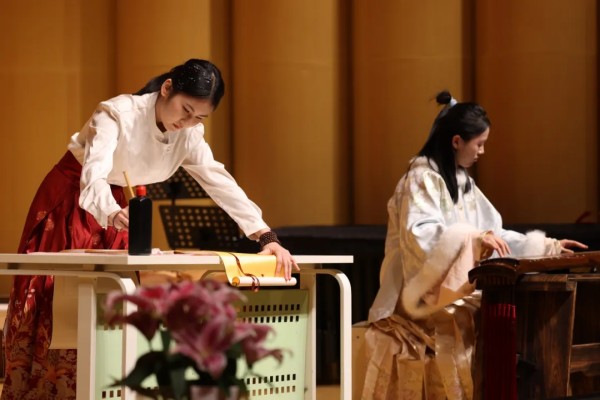 音乐会尾声,罗可曼教授对本次活动给予了高度评价与专业点评。他充分肯定了此次汇报演出在形式与内涵上的双重创新价值,指出其成功突破了单一表演艺术的边界,有机融汇了音乐、舞蹈、书法、诗词等多种元素,使学生在亲身参与中直观体悟到中华传统美学“诗乐舞一体”的综合性艺术特质。罗教授强调,这场生动的实践充分证明了中华优秀传统文化基因在当代校园语境中所迸发的崭新生命力,完美诠释了“守正”与“创新”的辩证统一。他殷切寄语同学们,应以此为契机,不断夯实文化根基,提升综合艺术素养,在继承与发展的道路上,坚定地走出属于自己的精彩人生路。