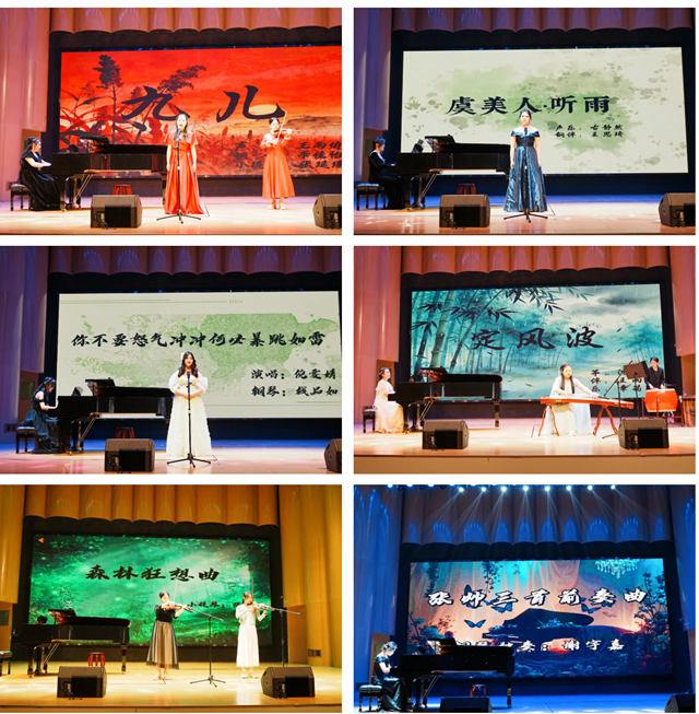整场展演节目形式丰富、编排精巧、层层递进,尽显音乐魅力与文化底蕴。《关山月》、《越人歌》等经典曲目,古韵悠长、意境深远,尽展中华优秀传统文化的深厚底蕴;《军营飞来一只百灵》、《你不要怨气冲冲何必暴跳如雷》等作品,旋律明快、声情并茂,彰显青春学子的艺术张力与蓬勃朝气;《匈牙利狂想曲》、《定风波》等曲目,风格多元、演绎精湛,充分展现了学子们对不同音乐风格的出色驾驭能力。独唱深情婉转,重唱和谐动听;器乐独奏余韵悠长,合奏气势恢宏……从古典到现代,从民族到世界,一曲曲动人旋律,一次次深情演绎,生动诠释了“以乐育人”的深刻内涵。