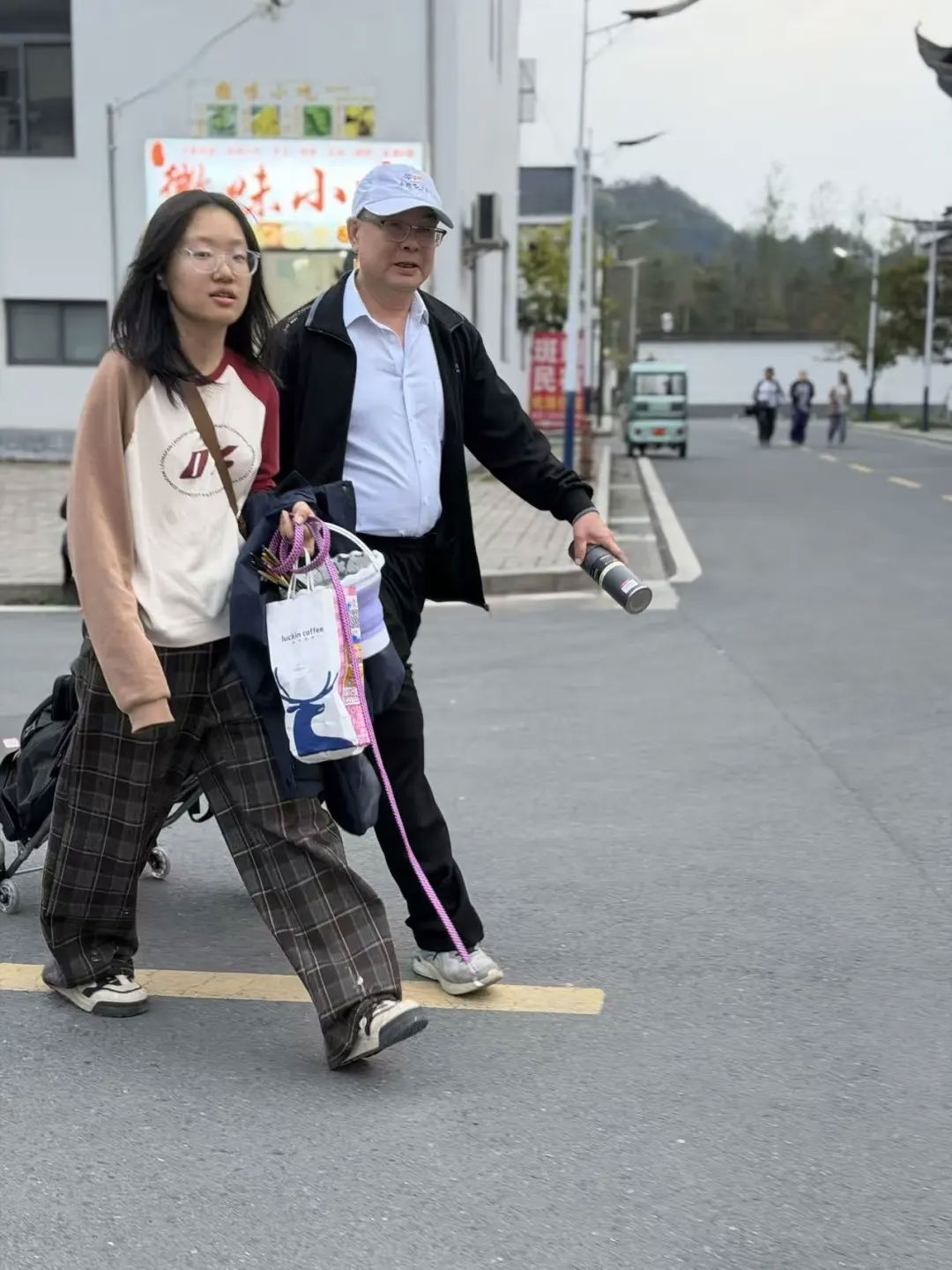 暮色渐浓,归来的路上,最动人的风景莫过于此。行至村口,聂校长早已等候多时。见一位女同学吃力地推着沉重的画具,他二话不说,快步上前,轻轻接过画车,稳稳地拉在手中。他步履稳健,笑意盈盈,为学子保驾护航。