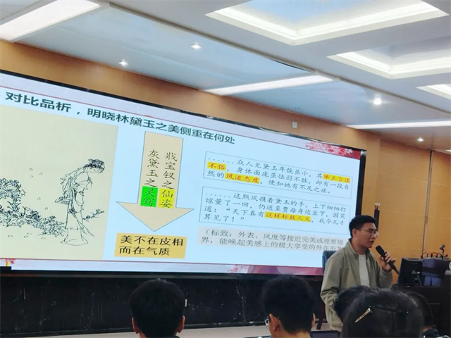 本次活动的核心环节——两堂美育融合示范课,更是让在场听课教师沉浸式感受到了古典文学与语文教学的审美碰撞,收获了具体可借鉴的教学方法。两位教师以《红楼梦》为载体,用精湛的教学技艺,为我们呈现了如何将美育元素无缝融入文本解读,为一线语文教学提供了生动范例。