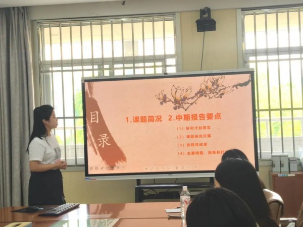 周茜如老师围绕高中艺术教育中中华优秀传统文化浸润实践展开,系统介绍了研究目标、中期进展与现存问题。此次汇报让课题组成员对传统文化与艺术教育的融合路径有了更深刻的认识,明确了教师素养提升与教学资源整合的重要性。