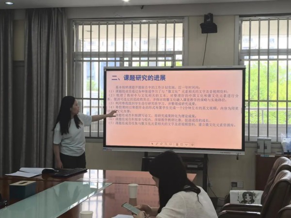 许霞老师围绕该课题分享了阶段性成果与教学策略。后期将进一步明确徽文化与英语教学融合的有效路径,完善教学设计与实施策略,继续深化实践,完善教学模式,为文化传承与学科育人提供新思路,助力学生全面发展。