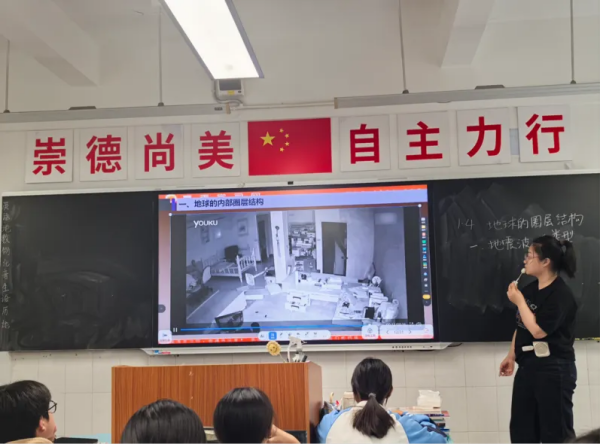 课程伊始,吴老师以“上天容易,入地无门”为引,借助科学钻井的探索实例,引导学生思考人类如何认知地球内部结构。在讲解地震波传播原理时,她巧妙类比“医院超声波检查”,将抽象的横波与纵波特性转化为生活化的医学场景,帮助学生直观理解地震波在不同介质中的传播差异。通过播放真实地震视频,学生不仅加深了对地震波传递过程的认识,也提高自身的自救能力。