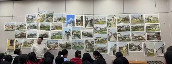 “观察远山与近景的虚实变化,学会用色彩营造空间感。”“注意透视与光影的把握。”“勇于尝试不同风格,发现美、创造美。”苏书记与随行老师们穿行于学生之间,给予个性化指导。生动的比喻、通俗的讲解,让复杂的绘画原理变得易懂。在最后一堂点评课上,老师们不仅肯定了大家的进步,更为每个人指明了前行的方向。