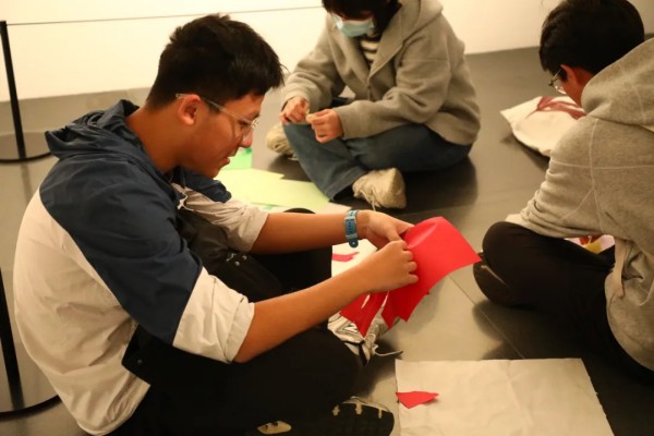 导览激发的灵感在《青春纸语》纸本综合材料创作环节中得到充分释放。同学们以纸为媒介,运用撕、揉、折等手法,将观展感悟转化为具象的艺术表达。他们从被动的观赏者转变为积极的创造者,与艺术家展开跨越时空的对话,以独特的“青春纸语”回应关于“时间与存在”的永恒命题。