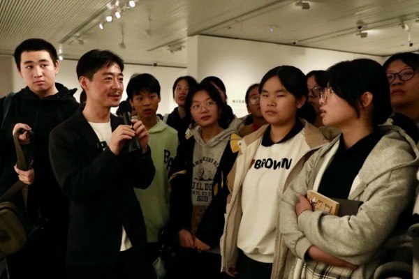 师生们驻足凝神,跟随艺术家的脚步,逐渐拉近与当代艺术的距离。高一16班一名学生感慨道:“原来艺术不只是画得像,更是思想的表达。汪老师让我们看到,时间可以被‘触摸’,情感可以被‘看见’。”