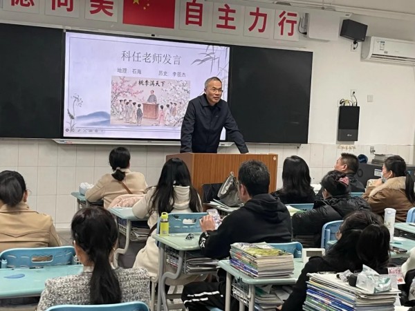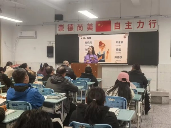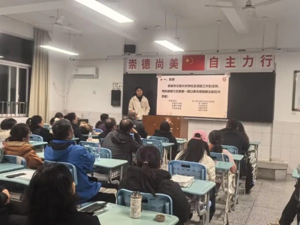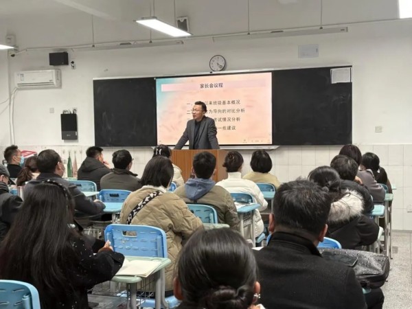 班级家长会设立了“榜样示范引领”环节。一位优秀学生家长分享了家庭教育的经验;一位进步显著的学生讲述了自身调整心态、改进方法的心得体会。