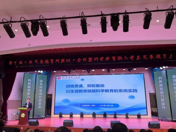 天一中学代表介绍了《四维贯通、双轮驱动——以生涯教育赋能科学教育的系统实践》。“四维贯通”涵盖课程、活动、平台与文化,“双轮驱动”则注重激发学生志趣与借助外部资源,并建立了“学生生涯发展档案”与双导师指导机制。