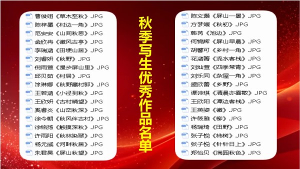接着,来自高二10班至15班的六名学生代表——徐萧雅、陈安南、张瑾萱、曹俊翊、何佳琪、赵雪妍依次上台,分享他们在写生中的观察感悟、创作心得与成长收获。大家纷纷表示,通过实地写生,不仅提升了绘画技法,更深刻体悟到“笔墨绘秋光,丹青映初心”的艺术追求。