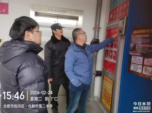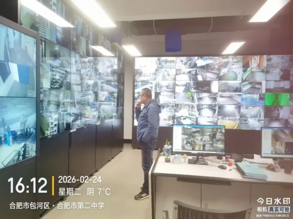 新学期开学在即,为切实做好校园安全工作,消除各类安全隐患,确保2026年春季学期各项工作平稳有序开展,2月24日,合肥二中党委委员、副校长聂新率领保卫科等相关职能部门负责人,深入校园各个区域,开展了一次全面、细致的开学前安全隐患大排查。