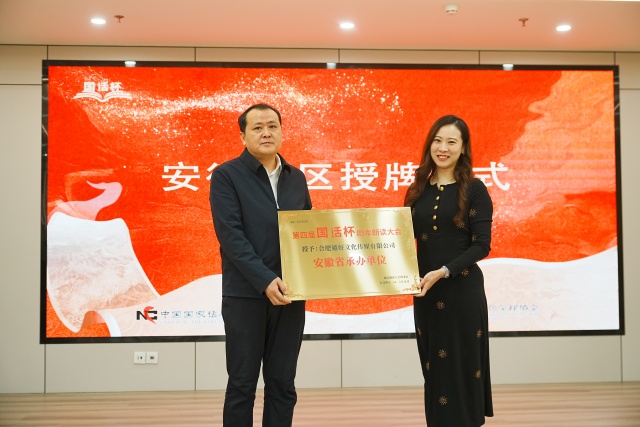活动现场进行了安徽展区授牌,这标志着第四届“国话杯”剧本朗读大会安徽赛区正式启动。随后主办方介绍了赛期安排、参赛条件等情况,其中参赛组别涵盖幼儿、小学、中学等多个年龄段,评审团队由业内知名专家组成,后续将通过专业评审与指导为参赛选手保驾护航。