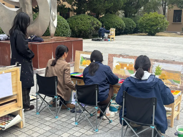 课堂上,我真切体会到户外写生的独特价值:不同于室内临摹的静态练习,真实场景里不断变化的光影、动态的自然环境,既考验学生的观察与应变能力,也倒逼我优化教学方法。我逐渐明白,户外教学并非“放任创作”,而是要在“自由表达”与“规范引导”之间找到平衡——既要给学生足够的空间去感知美、表达美,也要通过细致的技法指导,帮助他们克服创作难题,避免因环境干扰而偏离目标。
