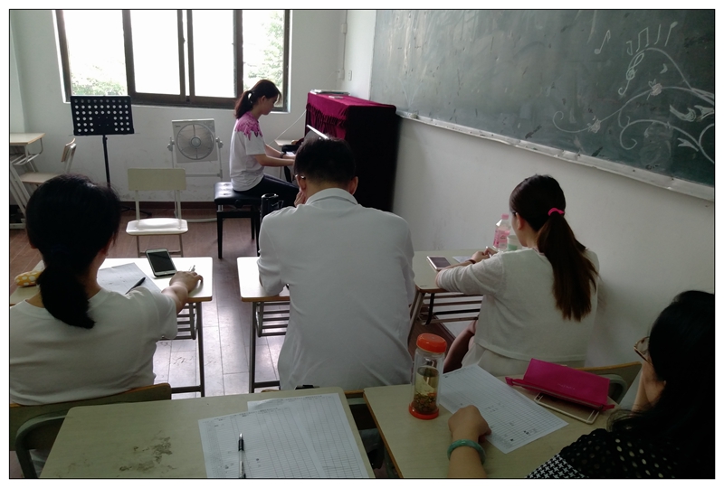 在这金秋送爽的九月,由校教务处、音乐教研组组织的2017-2018第一学期高二、高三音乐班专业课第一次模考于9月8日在艺术楼举行。此次模考秉承着“公平、公正、公开”的原则,特别邀请合肥师范学院的李雷、余志铭、马雪三位老师全程参与指导,旨在提高学生技能,提升音乐专业教学针对性。