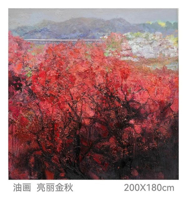 贾跃民老师的油画作品《亮丽金秋》(180cm×177cm),以饱满的色彩和抒情的笔调,热情讴歌大自然的丰硕与生命的绚烂,画面充满阳光般的温暖与活力,在“第九届安徽美术大展油画作品展”中荣获 优秀提名奖。