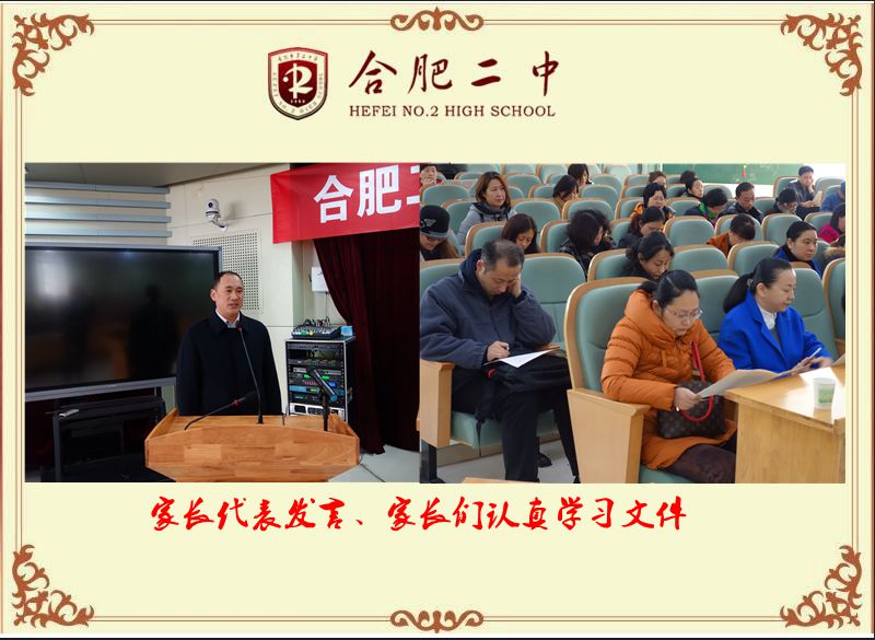 教务处副主任孙圣斌向家长代表们就学校教学管理、学校教学特色做了介绍;政教处胡章俊主任就学生教育、日常行为管理向家长们作了详细汇报。合肥二中的管理者们希望家长能够积极参与到家校合作的实际行动中,为学生的健康成长保驾护航。