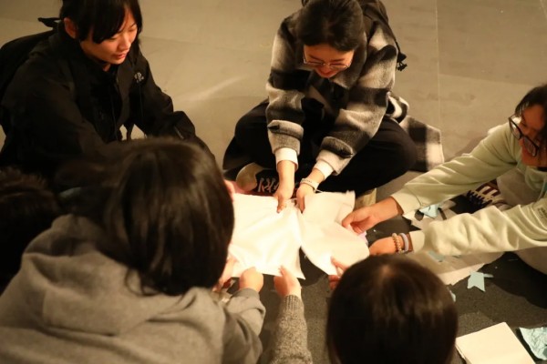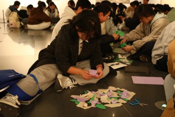导览激发的灵感在《青春纸语》纸本综合材料创作环节中得到充分释放。同学们以纸为媒介,运用撕、揉、折等手法,将观展感悟转化为具象的艺术表达。他们从被动的观赏者转变为积极的创造者,与艺术家展开跨越时空的对话,以独特的“青春纸语”回应关于“时间与存在”的永恒命题。