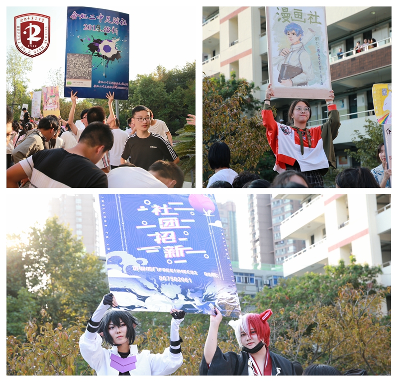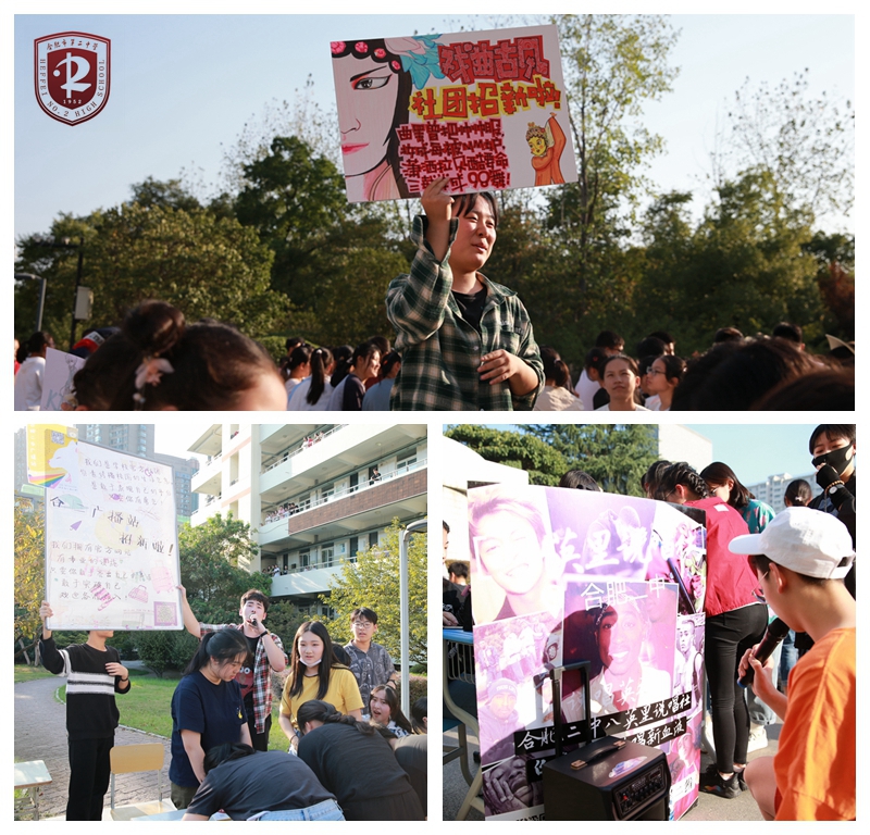 丹桂飘香今又香,社团招新复一年。为丰富校园文化生活,扩大社团对校园文化的影响力,充实校园社团新生力量,根据《合肥市第二中学社团管理办法》,在校团委的统一安排下,2019年9月25日下午4:30,我校新一轮社团招新活动强势来袭。18个社团齐聚学校教学楼前的广场,开展社团招新大战。部分社团指导老师亲临招新现场,与新生进行互动。