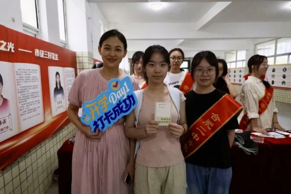 同学们跨越寓意成长的励志标语,参与“巧思启慧”知识盲盒抽奖,并在祝福卡上郑重写下新学年的目标与愿望,整个入校仪式充满仪式感与教育意义。