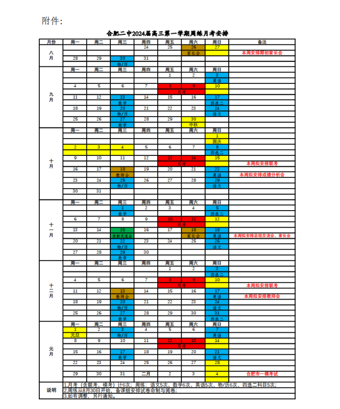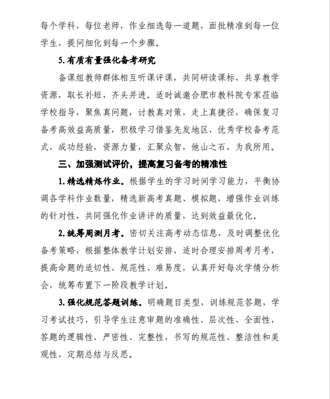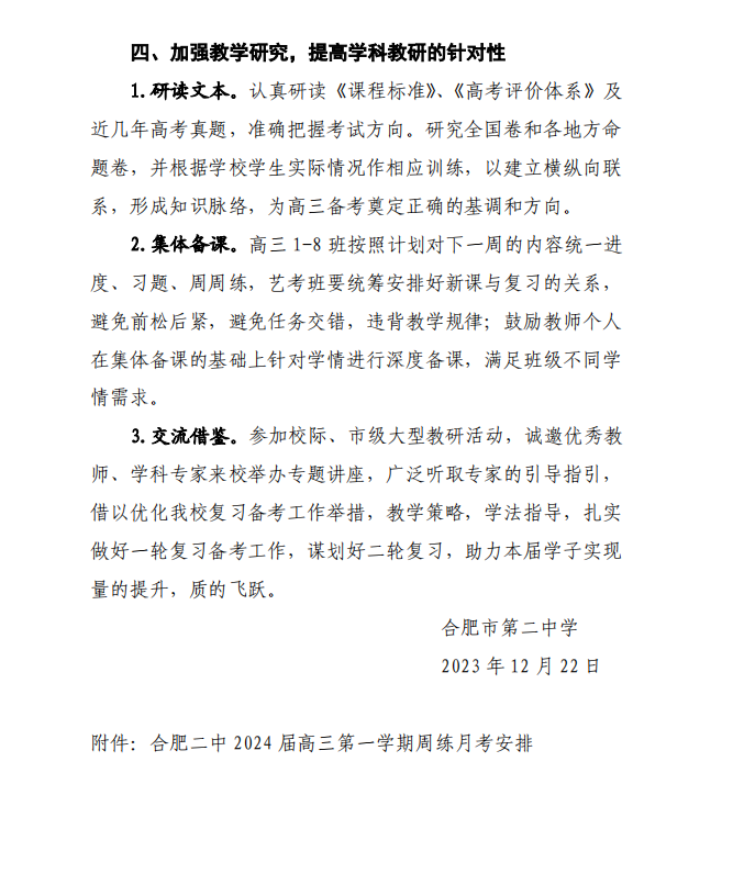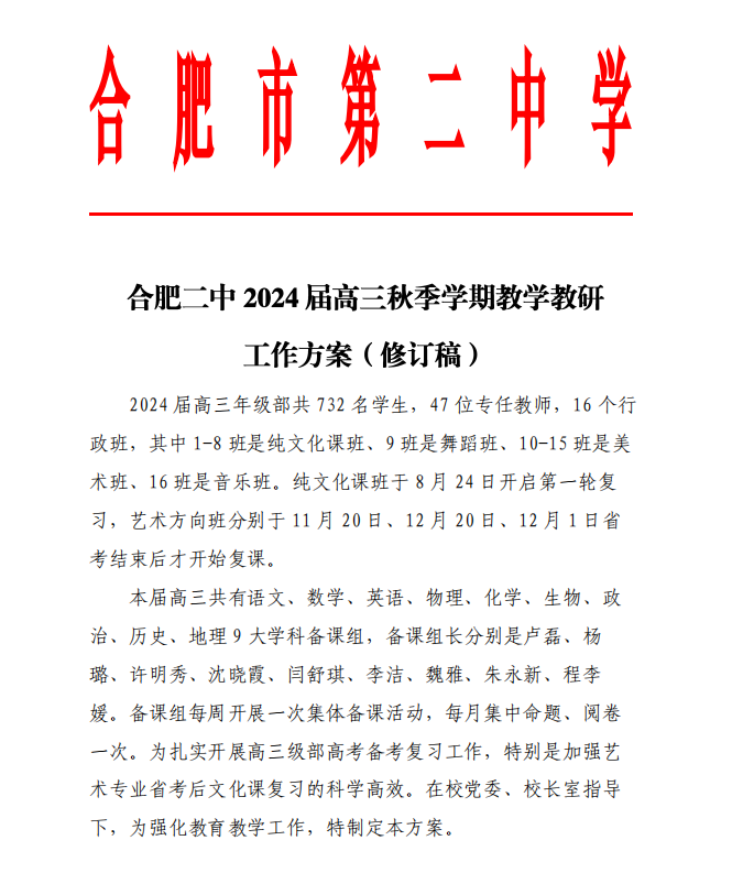 合肥二中2024届高三秋季学期教学教研 工作方案(修订稿)