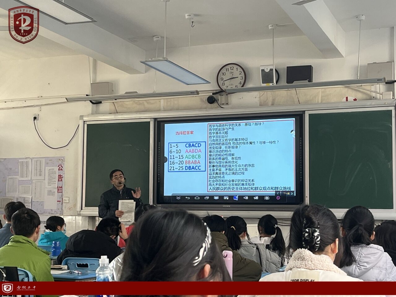 11月26日,朱先飞老师在高二8班开展开了高二年级期中考试试卷讲评课,朱老师首先依据数据、结合阅卷体会,从整体上分析了学生在本次考试中存在的问题:学生的选择题得分率不高,基础知识掌握不够扎实,学过的内容不注重及时复习;其次,部分学生的书写字迹潦草混乱,条理不清。大多数学生只会简单的概述,缺乏深入思考材料、剖析题意的能力。朱老师利用智学网大数据分析,有针对性地指出学生在本次政治考试中失分率最高的部分和得分率最高的地方,然后根据考试结果数据,分析学生易错点,再针对性地对错误率较高的题进行重点分析,并结合考点适度拓展补充。最后,朱老师还展示了部分学生的优秀试卷,为全班同学树立学习榜样。