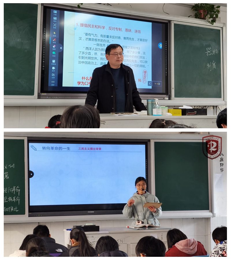下午2点半,6名六中历史专家老师分组走进高一、高二、高三课堂,先后听了高一年级李明菊老师的《中外历史纲要》上册第16课《两次鸦片战争》;高二年级李晓芹老师的第15课《三民主义的形成和发展》,童智祥副校长的第16课《新文化运动与克思主义的传播》,高三年级苏黄芳老师的复习课第3课《宋明理学》,龚璐老师艺术班的复习课第4课《明清君主专制的加强》。