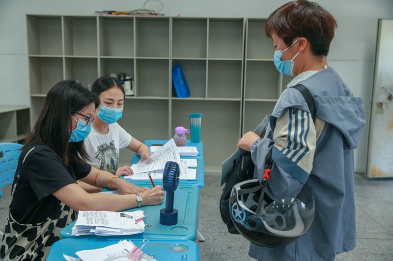 早上七点半,学校大门外已经排起了长长的队伍。在老师们的引导下,家长们佩戴好口罩,严格遵守属地疫情防控相关规定和要求。每人间隔1米距离耐心有序地排队等候。考虑到天气炎热,学校将美术教研楼一楼的几个教室提供给前来报名的家长们休息,并耐心解答家长们的疑问,家长们对学校的报名服务也很满意。热忱欢迎广大考生家长关注学校特色教育,为孩子选择适合的艺术教育之路。此次学校自主招生美术专业100人,音乐专业20人。