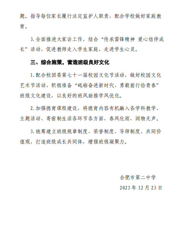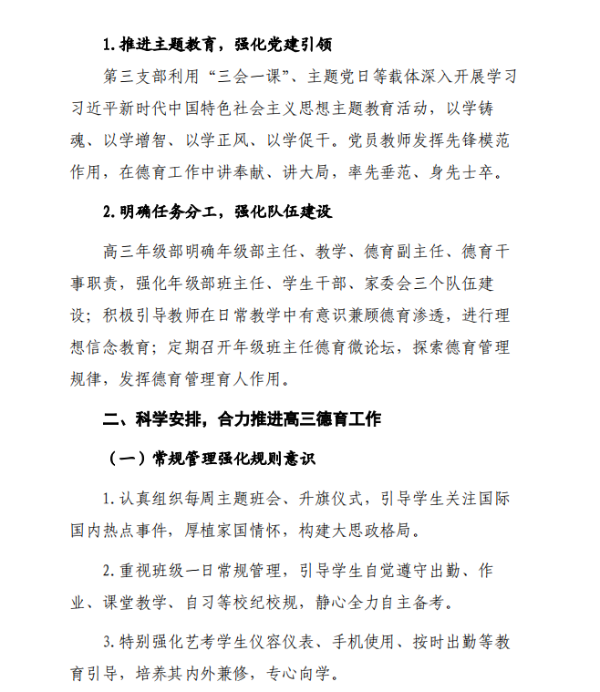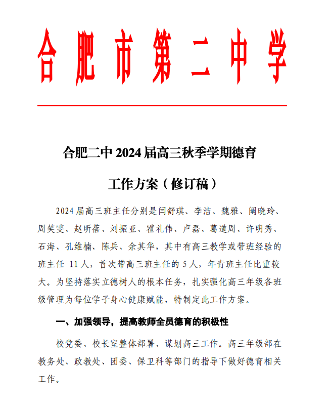 合肥二中2024届高三秋季学期德育 工作方案(修订稿)