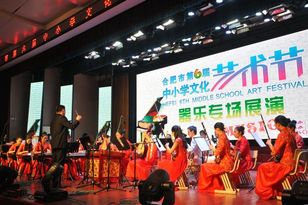 5月23日,由合肥市教育局主办的第六届中小学文化艺术节器乐专场展演在合肥市第三十五中学举行,来自合肥市第二中学等20所中小学的学生进行了民族器乐专业化水平的展示表演,并由省内民族器乐专家进行现场评分。