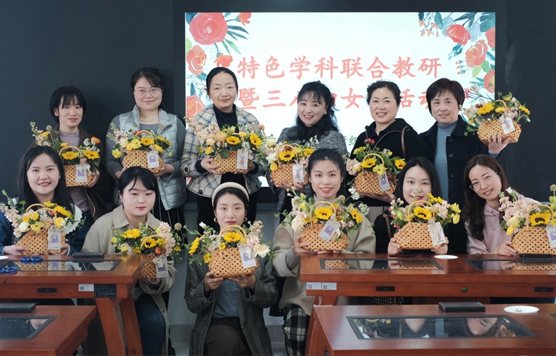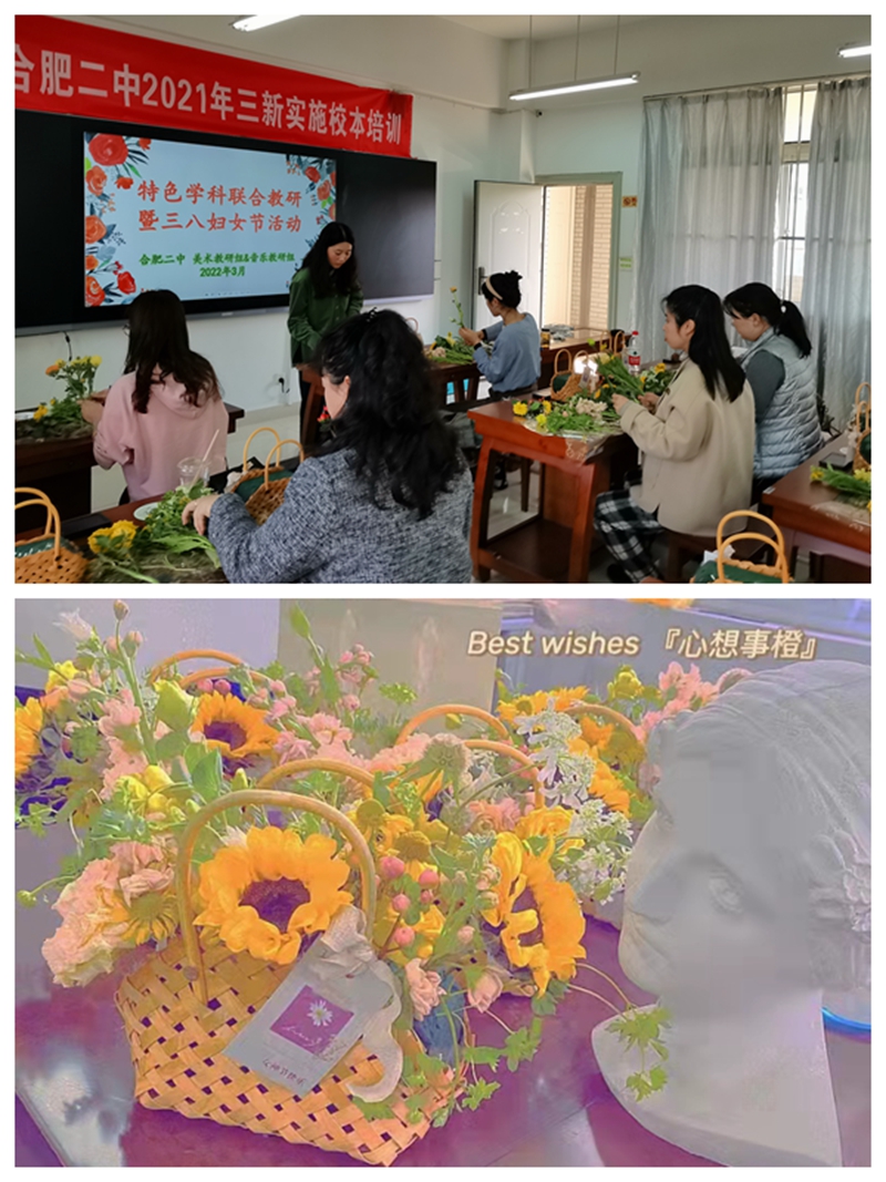 为推进新课程、新教材改革工作落地,进一步提高美育课程实施水平,3月4日星期五下午,作为特色学科的学校音乐、美术教研组结合学科审美特点,同时给即将到来的三·八“女神节”献上一份节日礼物,组织了一次联合教研活动——学插花,参加活动的有十余位音美组女教师。
