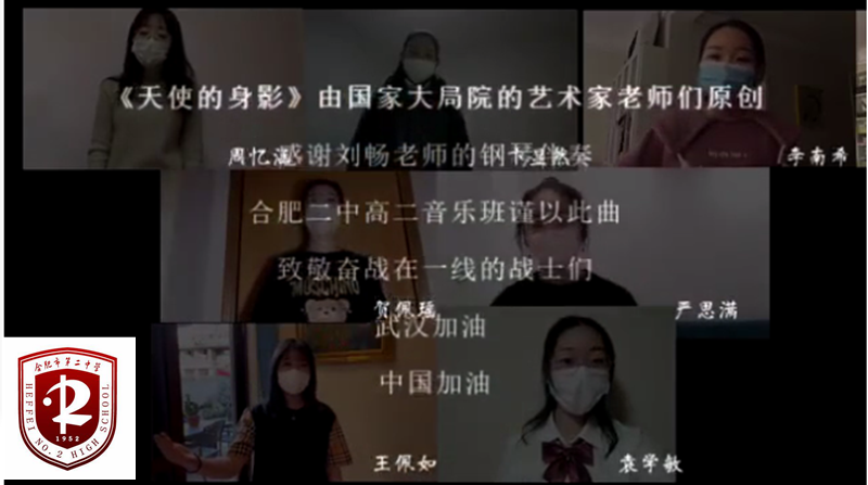 新年伊始,突如其来的疫情牵动着全中国人民的心,华夏儿女齐动员,抗击毒魔。作为全国艺术特色学校,合肥二中人用自己的特殊方式,防控疫情,积极传递正能量。音乐组组长刘畅老师带领校合唱团的部分成员传唱中国大剧院原创歌曲《天使的身影》,以表达合肥二中师生对白衣天使及奋战在疫情一线的工作人员的敬意!