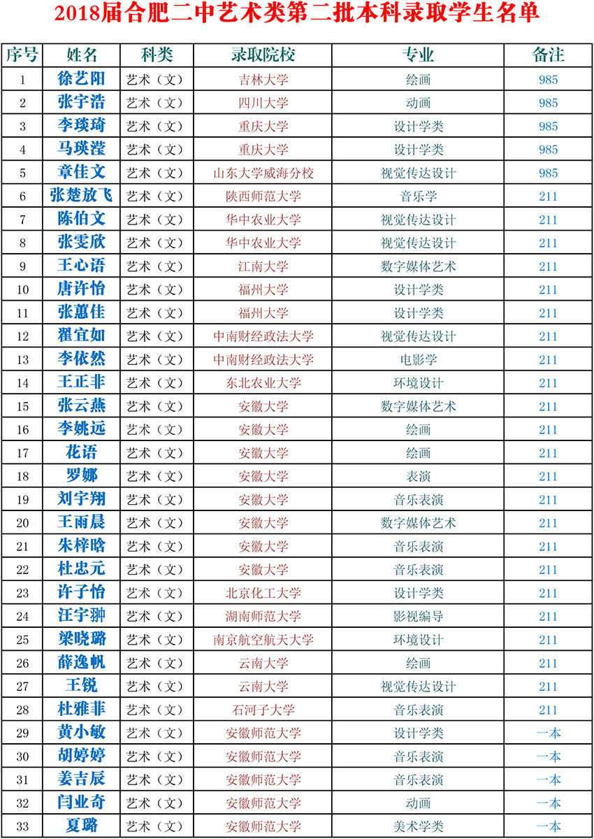 合肥二中2018届第二批本科录取学生名单