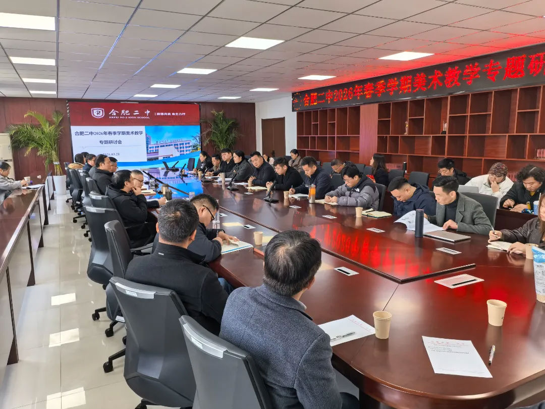 3月25日上午,合肥二中2026年春季学期高一年级美术班写生教育教学专题会在行政楼二楼会议室顺利举办。学校领导、高一年级各班班主任、美术教师、家长代表及旅行社负责人齐聚一堂,聚焦“安全”与“专业”两大核心,凝聚多方合力,为即将到来的写生教学擘画蓝图、筑牢根基。