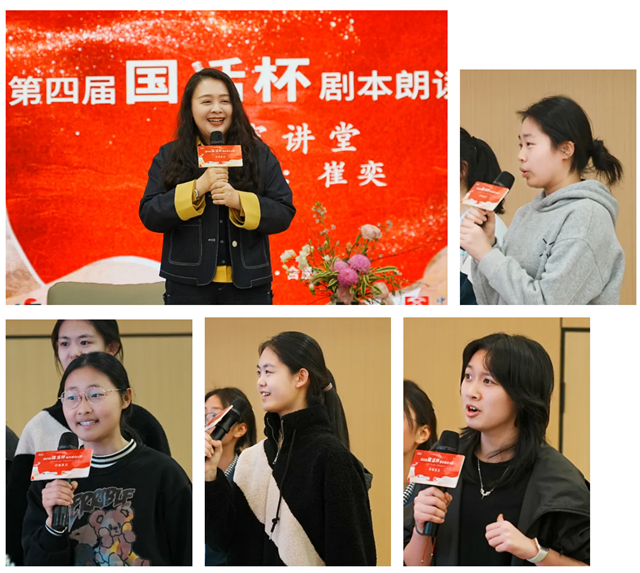 值得一提的是,合肥二中校友、知名演员崔奕在名家讲堂环节进行了沉浸式台词教学。合肥二中高一18班的学子主动登台展示朗读片段。崔奕结合大家的表现,从台词发音、情感把控、节奏韵律、舞台表现力等方面进行一对一细致点评,手把手传授专业技巧。参与学子全程认真聆听、积极互动,纷纷表示在专业指导中提升了语言艺术实践能力,深刻体会到了经典文化与剧本朗读的魅力。