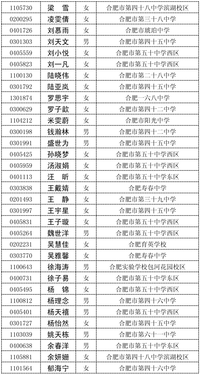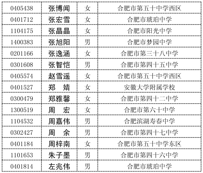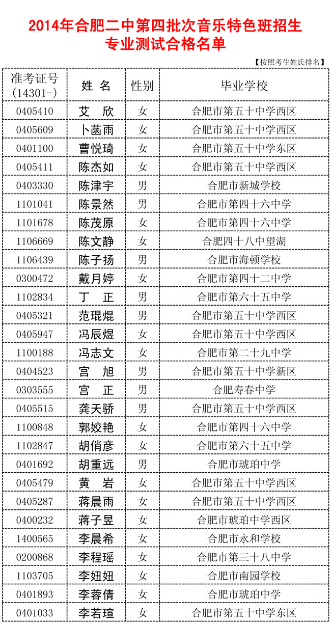 2014年合肥二中第四批次音乐特色班专业考核合格名单
