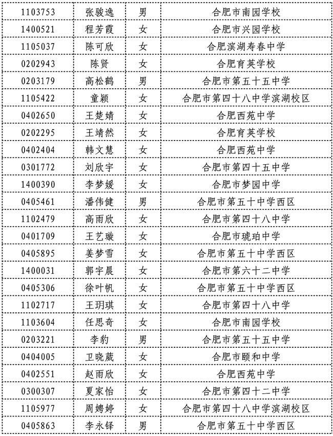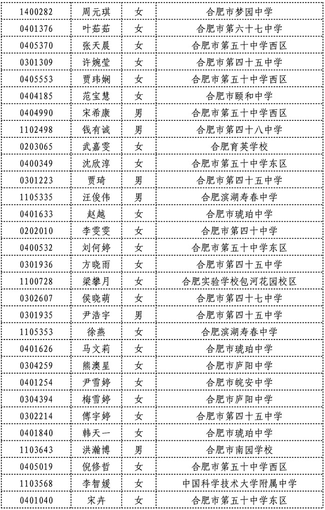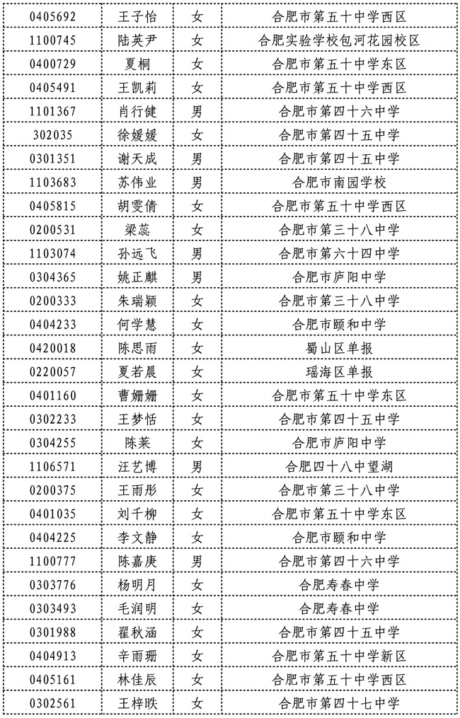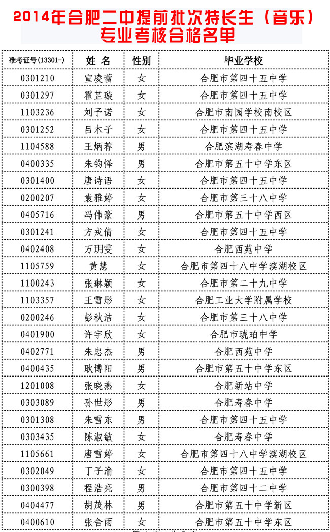 2014年合肥二中提前批次特长生(音乐)专业考核合格名单