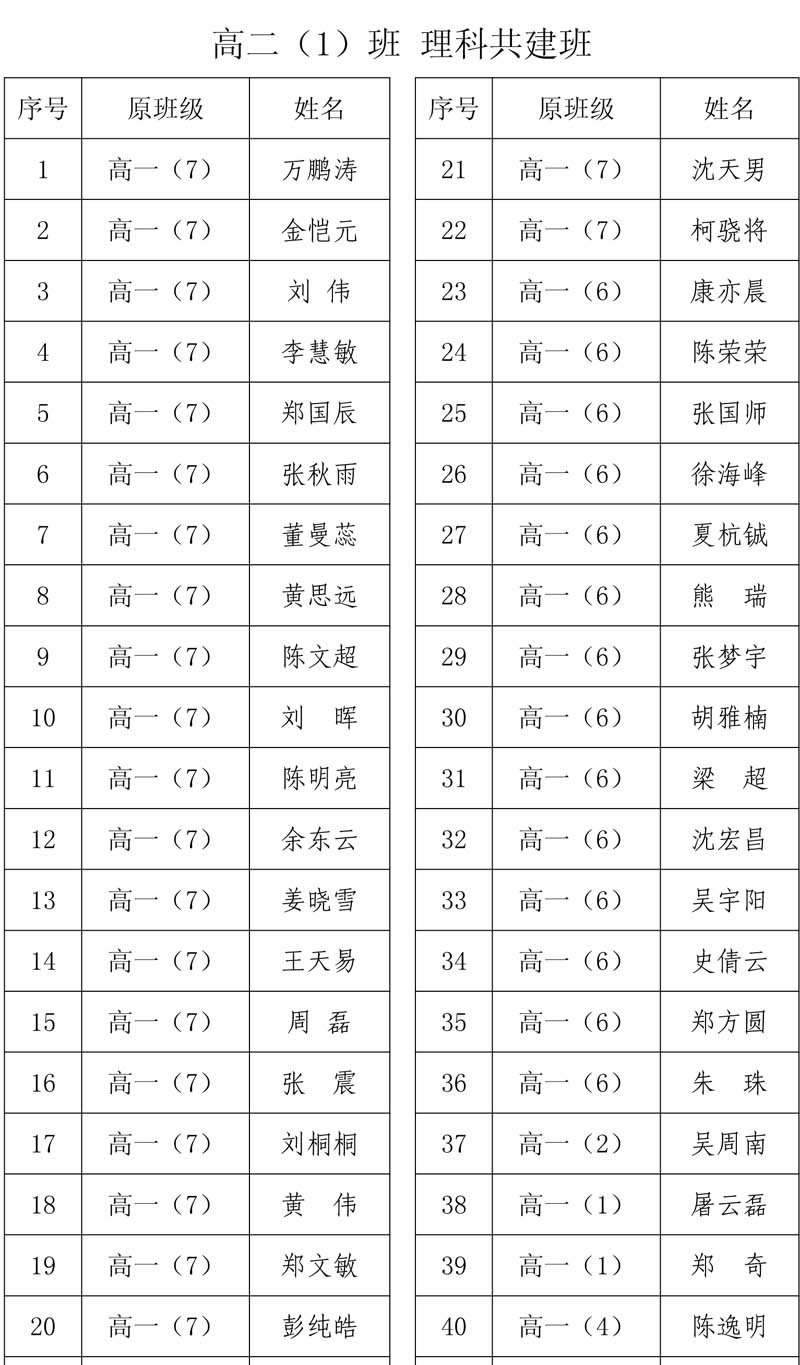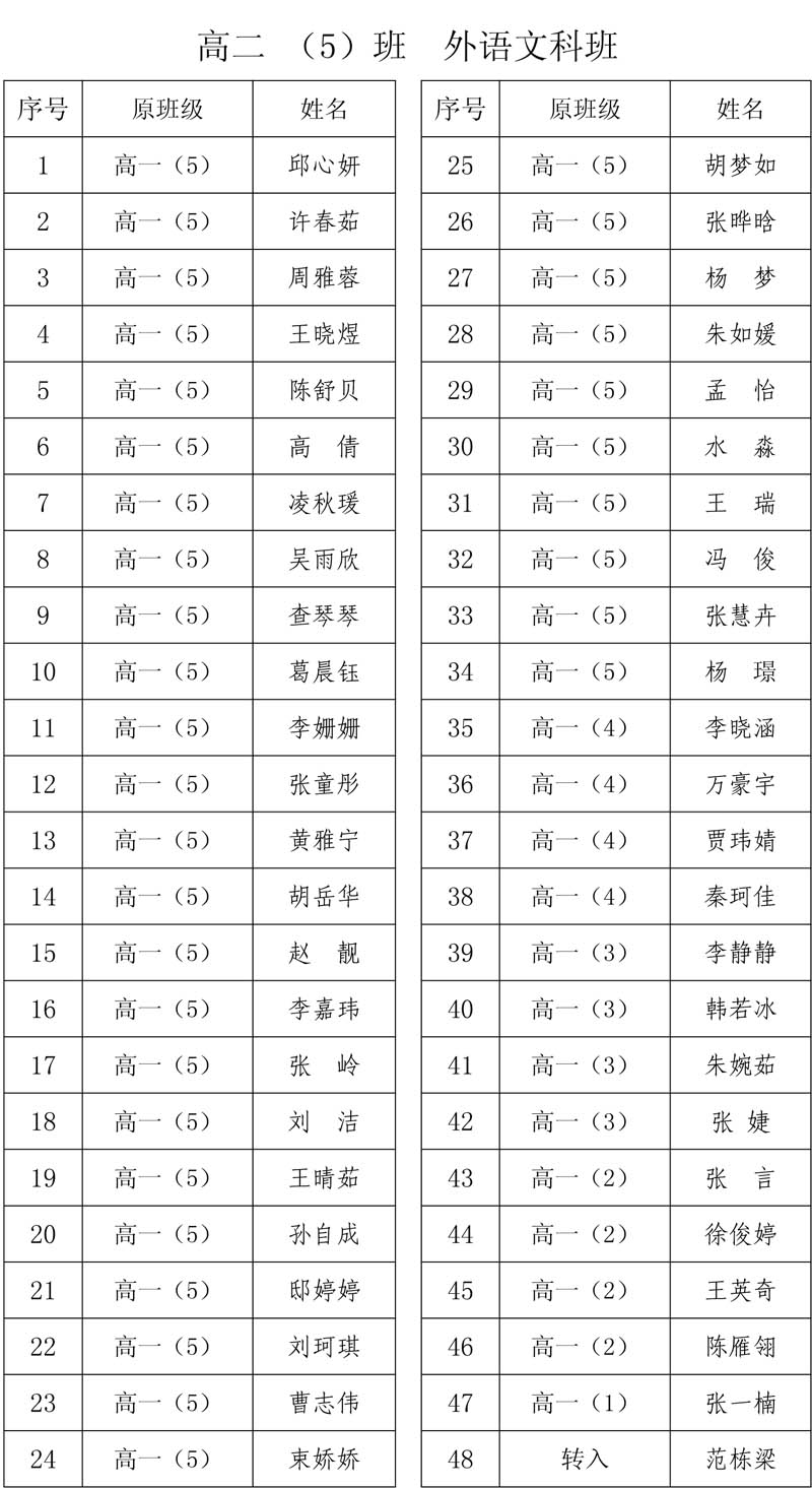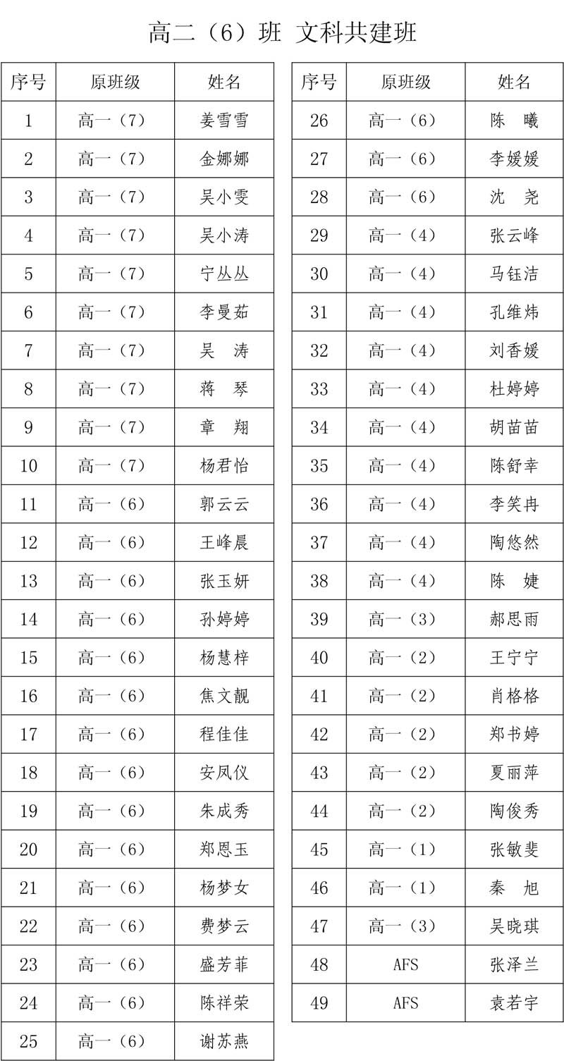 合肥二中高二分科选班结果