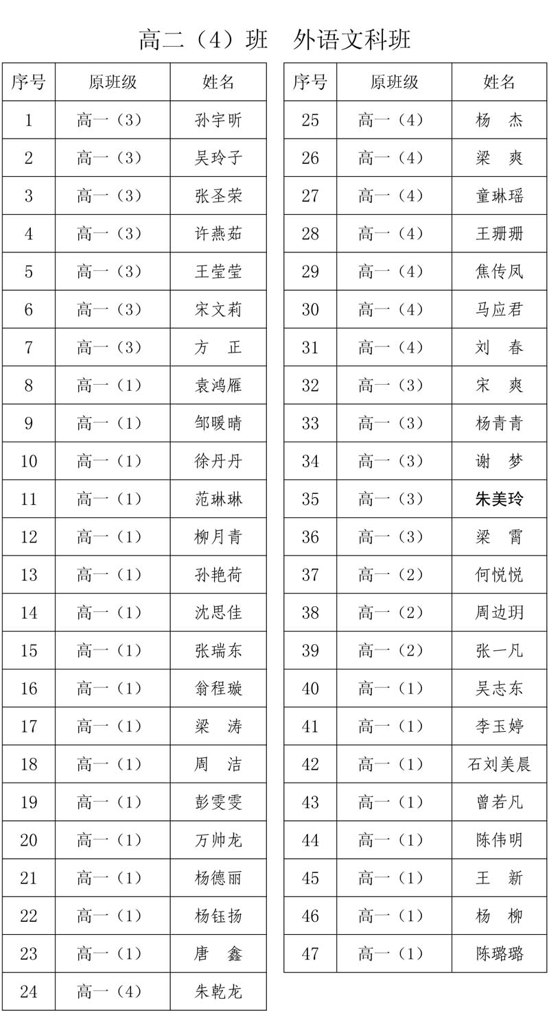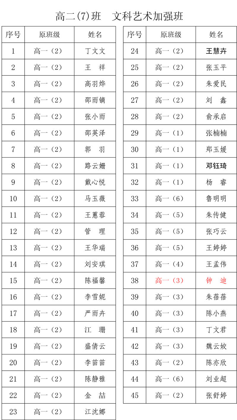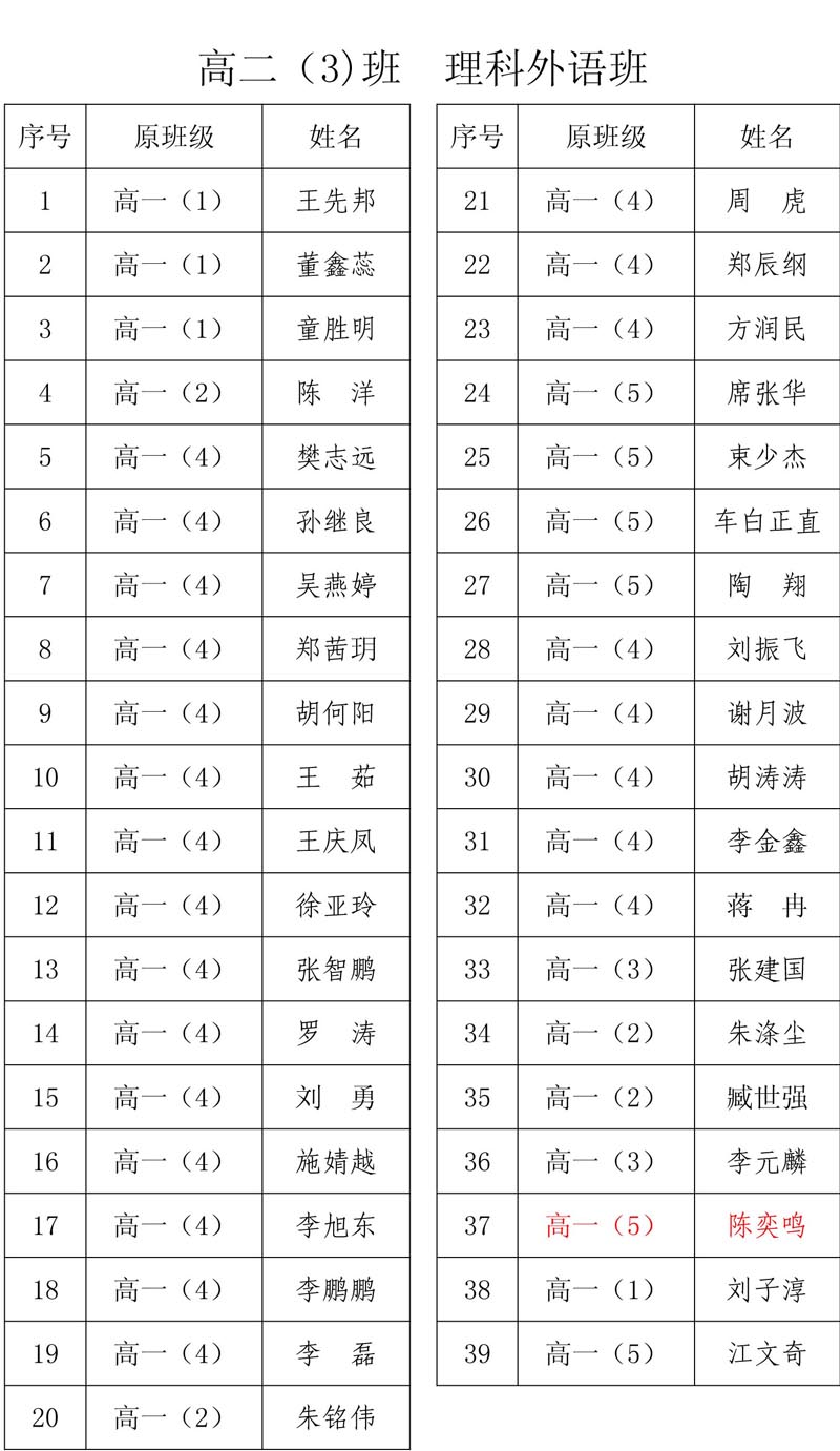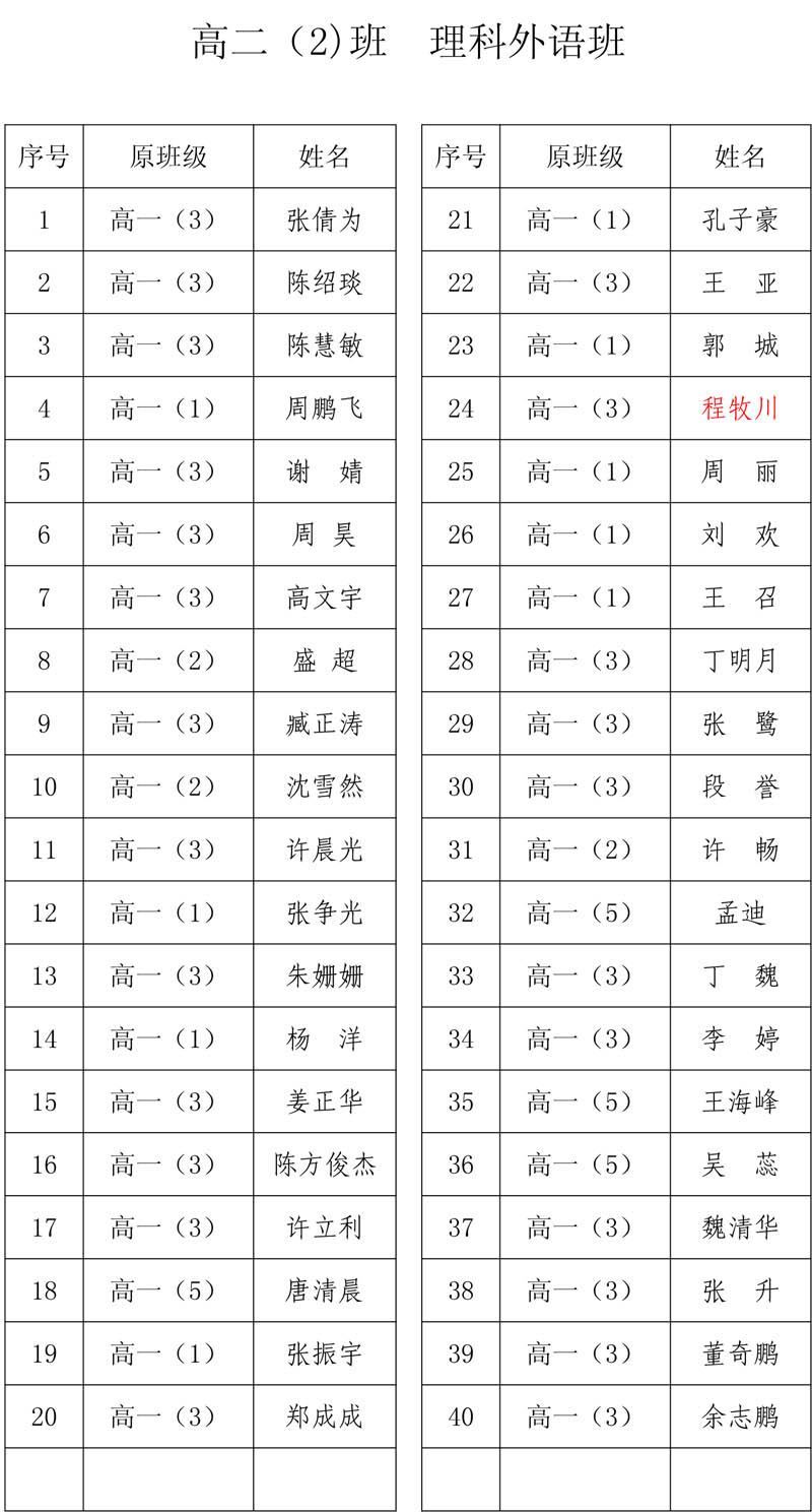合肥二中高二分科选班结果