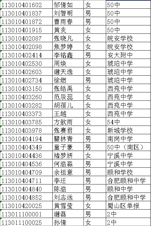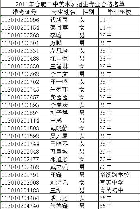 2011年合肥二中美术班招生专业合格名单公示
