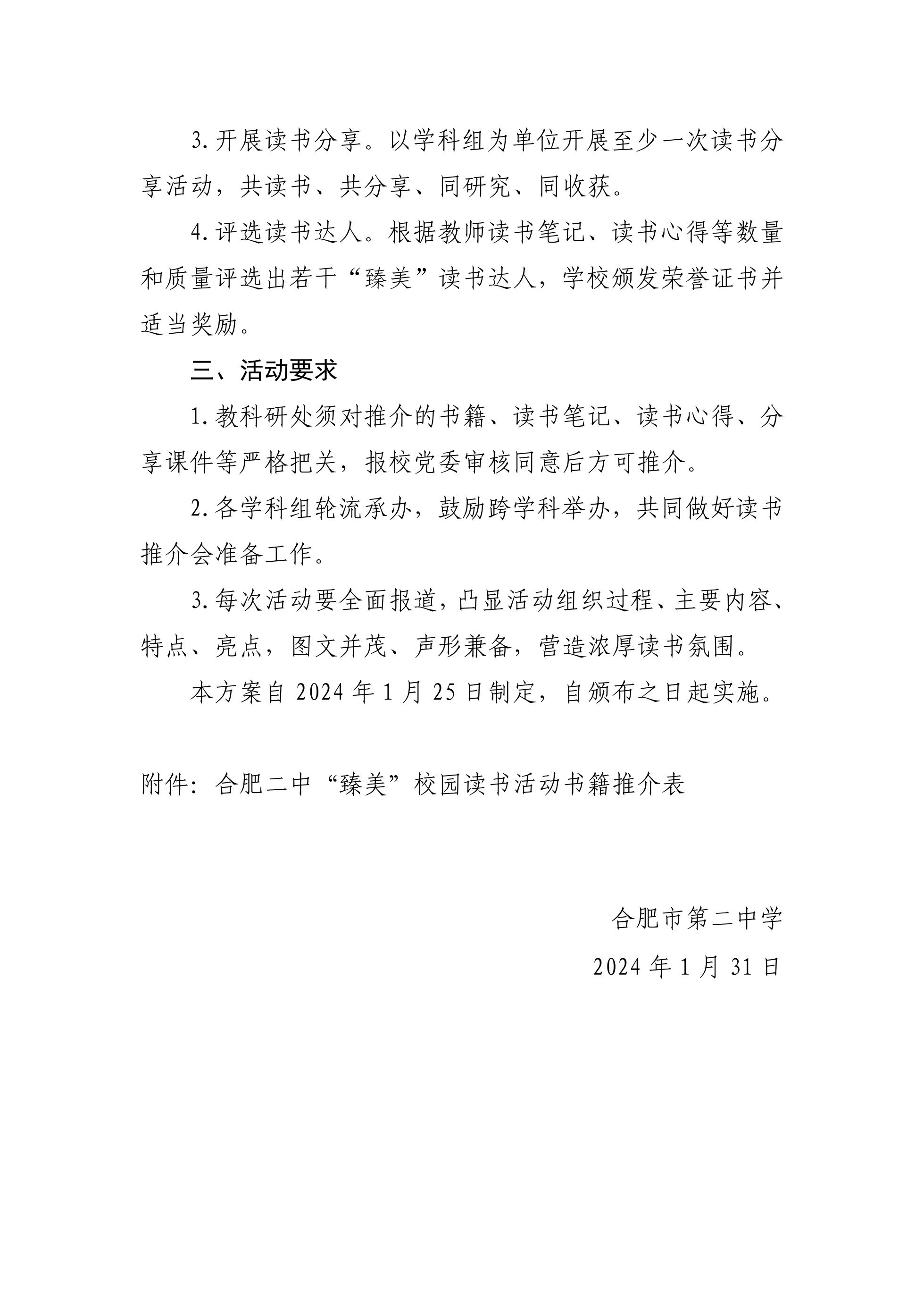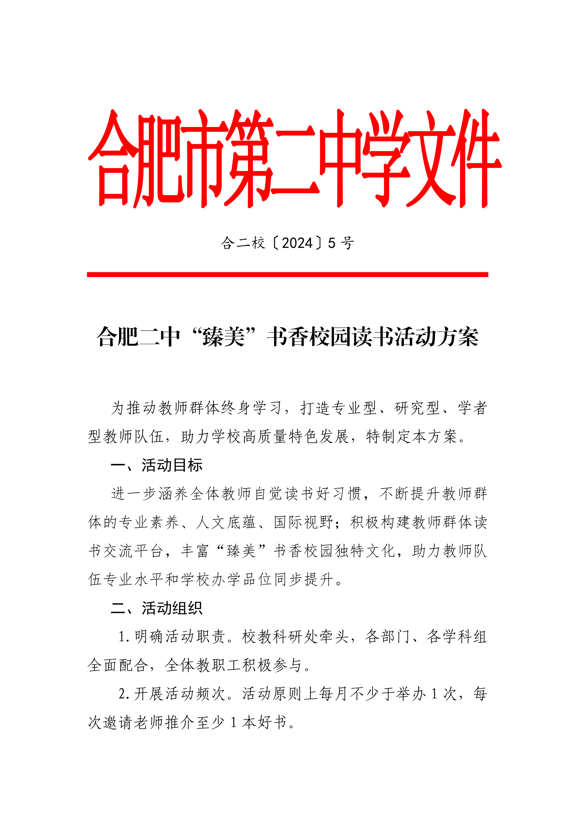 合肥二中“臻美”书香校园读书活动方案