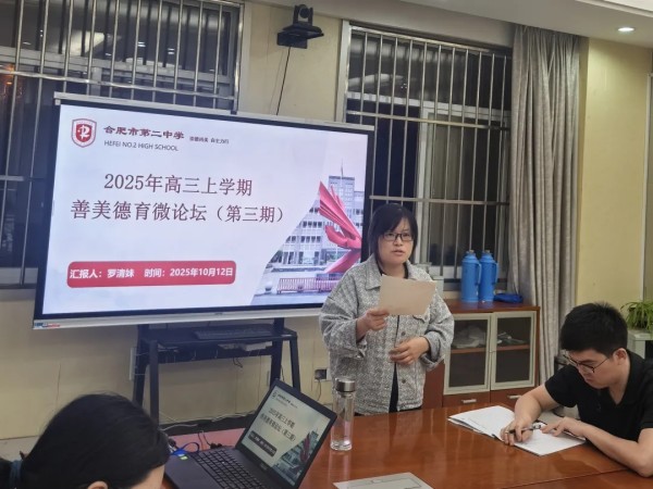 为深入推进德育工作,助力高三学生全面成长,2025年10月12日晚19:10,合肥二中高三年级部在行政楼二楼会议室成功举办第三期“善美德育微论坛”。本次会议由年级部德育主任蔡亚群主持,高三年级部成员及全体高三班主任共同参与,围绕育人策略展开深入研讨。