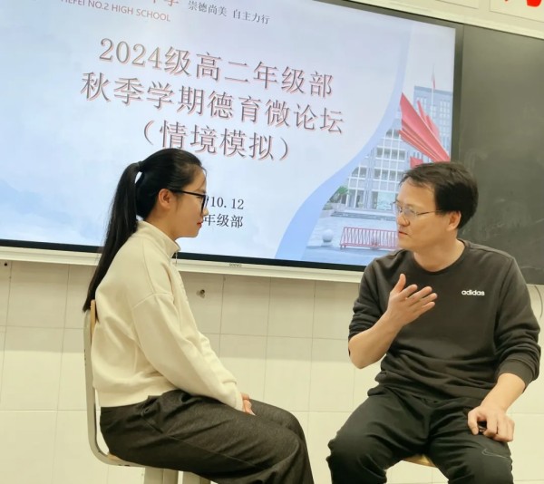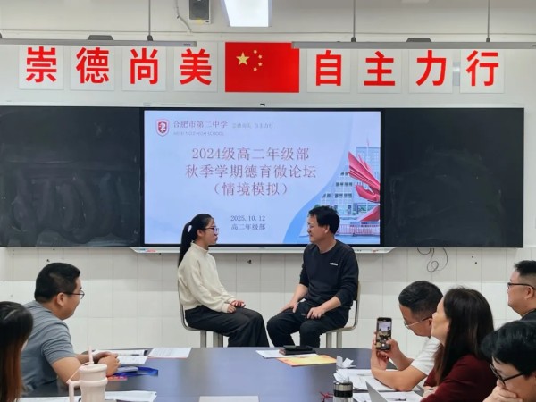 金秋送爽,沁人心脾。为提升青年班主任的专业能力,加强班主任队伍建设,高二级部于2025年10月12日举办了秋季学期第三次德育微论坛。本期论坛以“厌学学生的情绪沟通情境模拟”为主题,由年级部德育主任陈兵主持,高二全体班主任参与。
