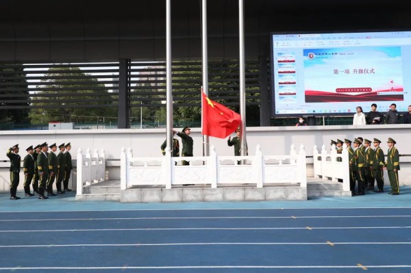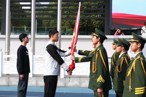 首先进行的是国旗班换届环节。2024级国旗班队员迈着整齐有力的步伐入场,他们英姿飒爽、目光坚定,在过去一年中恪尽职守,圆满完成了每一次升旗任务,成为校园中一道亮丽的风景线。全场以热烈的掌声向他们的辛勤付出致以崇高敬意。