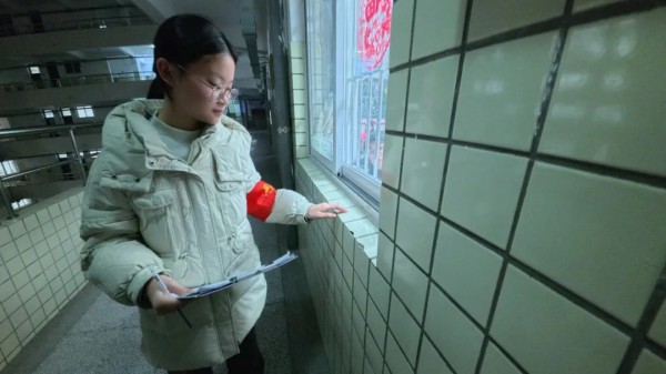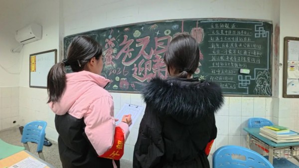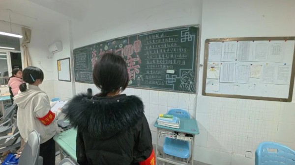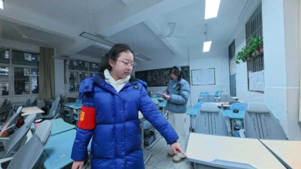 暮色渐浓,卫生检查悄然开始。一束光掠过窗台,他们认真记录桌椅的整齐、讲台的明净,甚至废纸篓里被轻轻揉皱的草稿纸——那或许是某份青春的灵感初稿。每一次俯身与查看,都是为明日干净的晨光,签下一份安静的注脚。