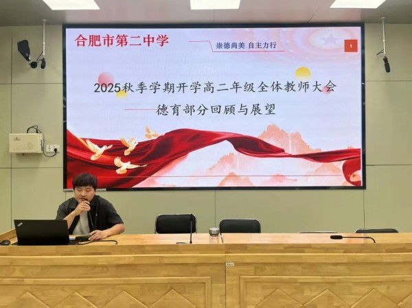 四时俱可喜,最好新秋时。合肥二中第三党支部、高二级部召开了以“扎实做细,全员育人”为主题的新学期教育教学工作会。会议由高二年级部主任刘振亚主持,校党委委员、副校长胡毅林莅临指导,高二级部全体教师参加。