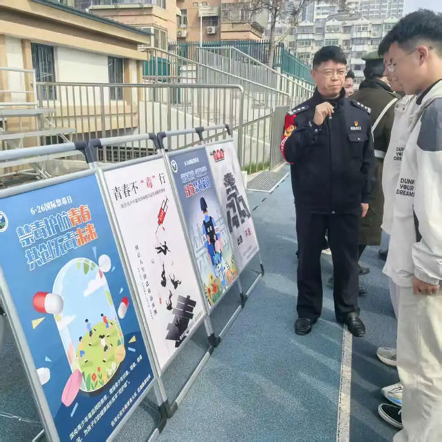 在安全教育讲话结束后,现场同步开展防诈、禁毒线下宣传活动。民警通过摆放宣传展板等形式,为学生普及反诈、禁毒知识。现场学生积极参与互动,主动咨询安全知识,宣传活动取得良好效果。